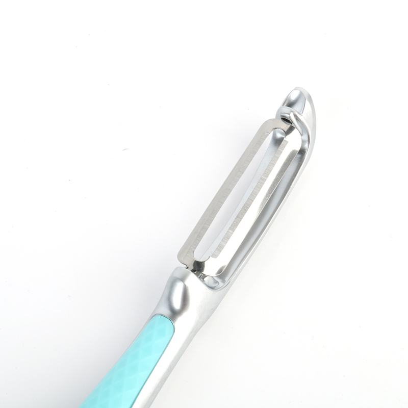 వినియోగ పనితీరు మరియు సౌలభ్యం పరంగా, స్ట్రెయిట్-హ్యాండిల్ పీలర్ విస్తృత శ్రేణి అప్లికేషన్లను అందిస్తుంది మరియు తక్కువ నిల్వ స్థలాన్ని తీసుకుంటుంది. వివిధ డైనింగ్ సెట్టింగ్లలో లేదా వివిధ పండ్లు మరియు కూరగాయలతో వ్యవహరించేటప్పుడు-అవి పొడవుగా, చదునుగా, గుండ్రంగా, సక్రమంగా లేదా విచిత్రంగా ఆకారంలో ఉన్నా- నేరుగా-హ్యాండిల్ పీలర్ జీవితంలోని వివిధ సమస్యలను సులభంగా పరిష్కరించగలదు. వంటశాలలు మరియు అంతకు మించి, ప్రజలు ఎలాంటి ఆందోళన లేకుండా వంటపై దృష్టి పెట్టడానికి మరియు వారి భోజనాన్ని ఆస్వాదించడానికి వీలు కల్పిస్తుంది. మినీ జింక్ మిశ్రమం వెజిటబుల్ పీలర్ తుప్పు పట్టకుండా లేదా తుప్పు పట్టకుండా ఉండేలా అధిక-నాణ్యత పదార్థాలు నిర్ధారిస్తాయి, ఇది ఎప్పుడు మరియు ఎక్కడ ఉపయోగించినా నీటితో శుభ్రం చేయడం సులభం చేస్తుంది.